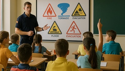 Программа предусматривает занятия для школьников всех возрастов с акцентом на пожары, наводнения и землетрясения.
